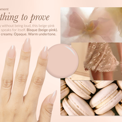 Bisque (beige-pink). Light, creamy. Opaque. Warm undertone.